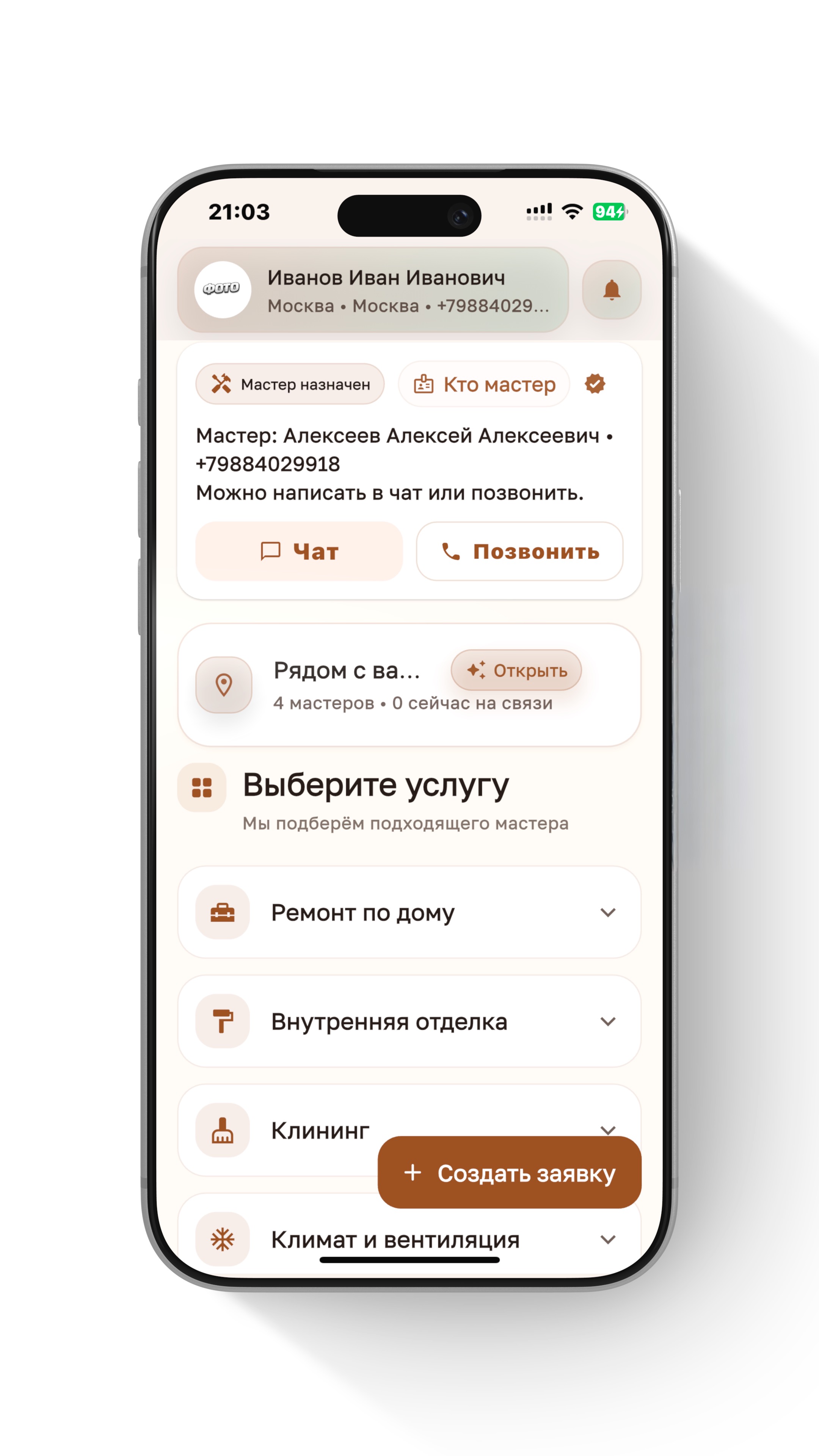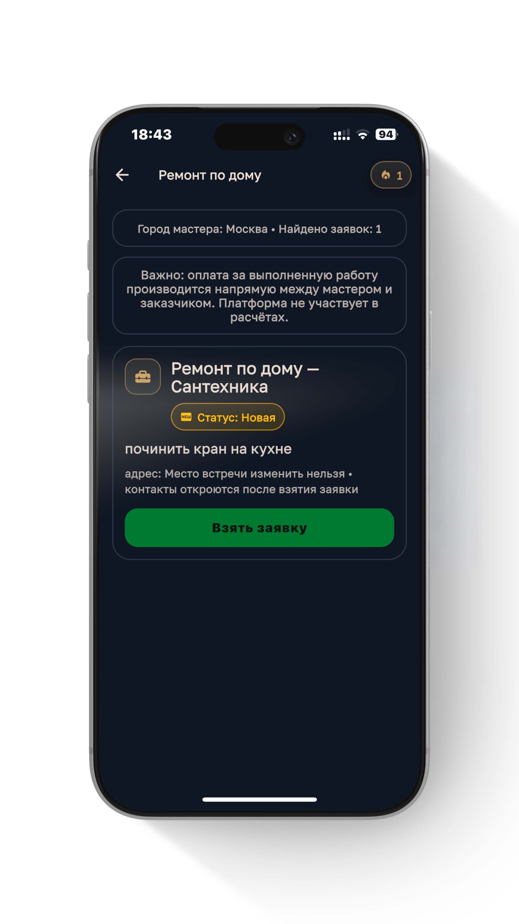 Заказчик находит мастера. Мастер находит работу без посредников. Всё по делу — быстро, прозрачно, без лишних звонков и суеты.